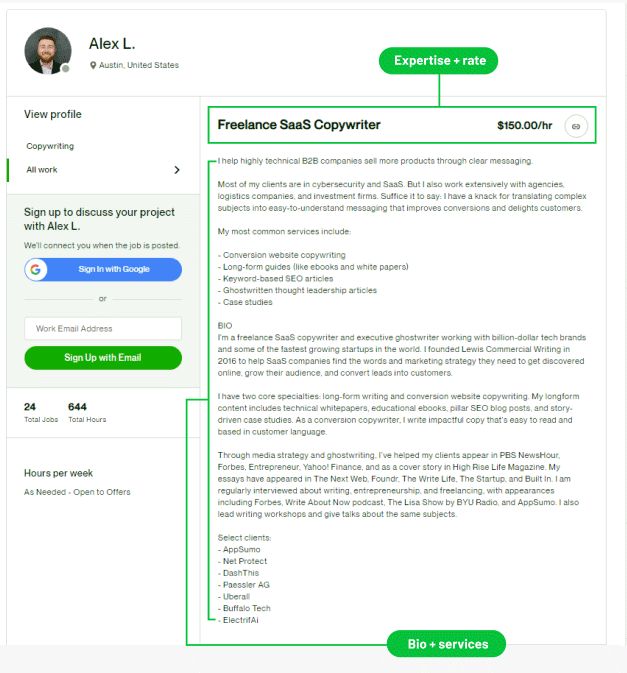 At the beginning of 2016, I (hi, it’s me—the author of this article) resigned from my 9-to-5 job with no idea what I’d do next. A friend told me that I should learn about freelance copywriting. In his words: “Alex, you’re a good writer and you live in a tech city. These developers know how to build great products but don’t know how to tell anyone what they’ve made. Why don’t you just make a living writing for tech companies as a freelancer?” Long story short: I followed my friend’s advice. Six years later, I run a six-figure one-person writing business.