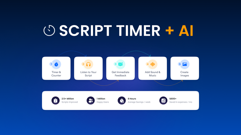 Script-Timer Ai is an AI tool that lets you script, storyboard, and record videos with voiceovers in just one day.